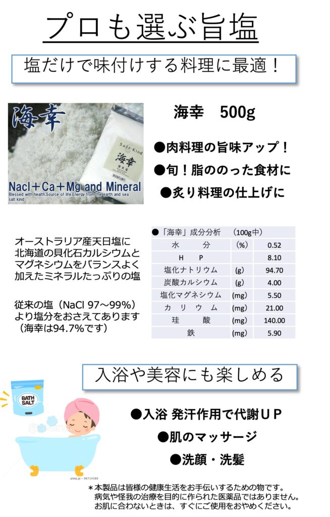 ・食すだけでなく、美容としてバスソルトにも使用できます。